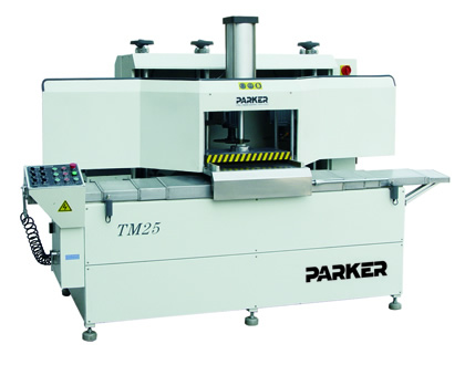15-07-03TM25铝幕墙铣榫机是铝门窗生产的专用设备之一。适用于各种型材端面,台阶面的成型加工。如铝幕墙型材接口及铝门窗上下滑的成型加工,削边(角),开长方形孔槽等。一次走刀即可在型材端面铣削成所需的榫口尺寸,六套组合刀具可根据用户需要组合成任意角尺寸。其中两组刀具可在180°范围内铣切。该设备吸收了国内外同类产品的优点,整机结构紧凑,加工范围大,操作方便,生产效率高。