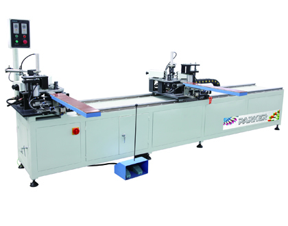 ◆ 热铝门窗加工的专用设备,用于框、扇料的双头同步冲铆组角。