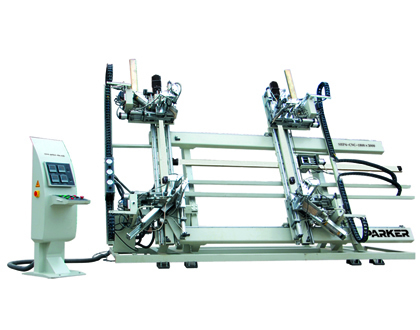 塑料门窗立式数控四角焊接机是高档塑料门窗专用设备,用于自动实现塑料门窗矩形框、扇的焊接,是我公司研制开发的新机型,在国内具有领先水平。采用CNC数控技术,进口MITSUBISHI 伺服电机及PC机,超大触摸屏控制系统,操作简单.对不同规格的型材可实现高精度自动定尺挤角;采用精密高导程滚珠丝杠传动,圆柱直线整体导轨、直线轴承副,扁平直线导轨采用进口ABBA品牌,配备有注油保养装置,使日常保养润滑更加简便有效,进给平稳,噪音小;一次可完成四个角的焊接。独立操控箱,可任意移动,操控灵便;压紧气缸为 “亿日”牌;特别设计防错位装置、辅助刹紧。电控箱采用航空航天专用插头,安全稳定。压紧机构自动伸缩并可随时调整;通过伺服系统及PLC控制系统,实现四角自动预紧;特有的定位机构及专利技术压紧装置,有效地保证了焊接成品尺寸精度、平面度及形状与位置精度。通过合理控制焊瘤翻溢范围,增加型材有效焊接面积,使门窗制品焊接角强度提高30%以上;同时,为获得理想的角缝清理效果提供了必要条件。一次性组框能大大提高了工作效率。
